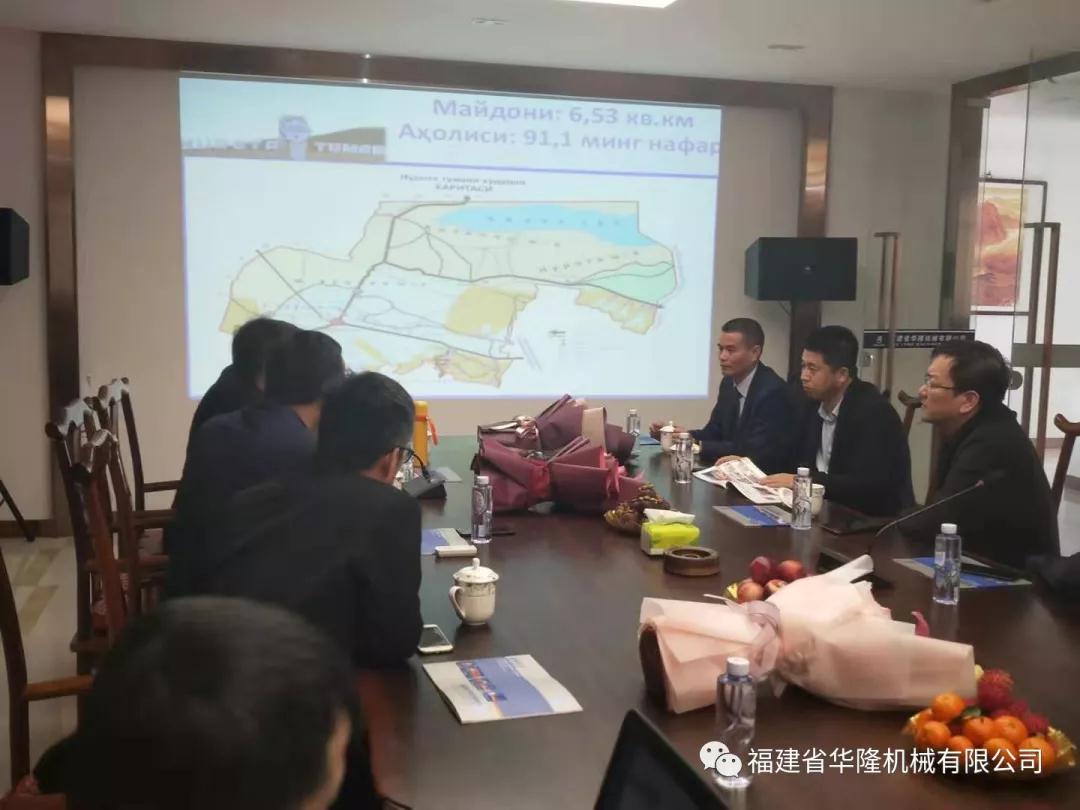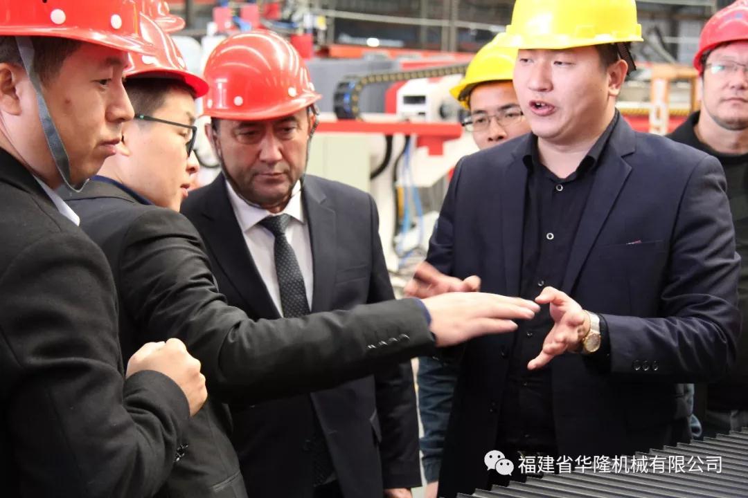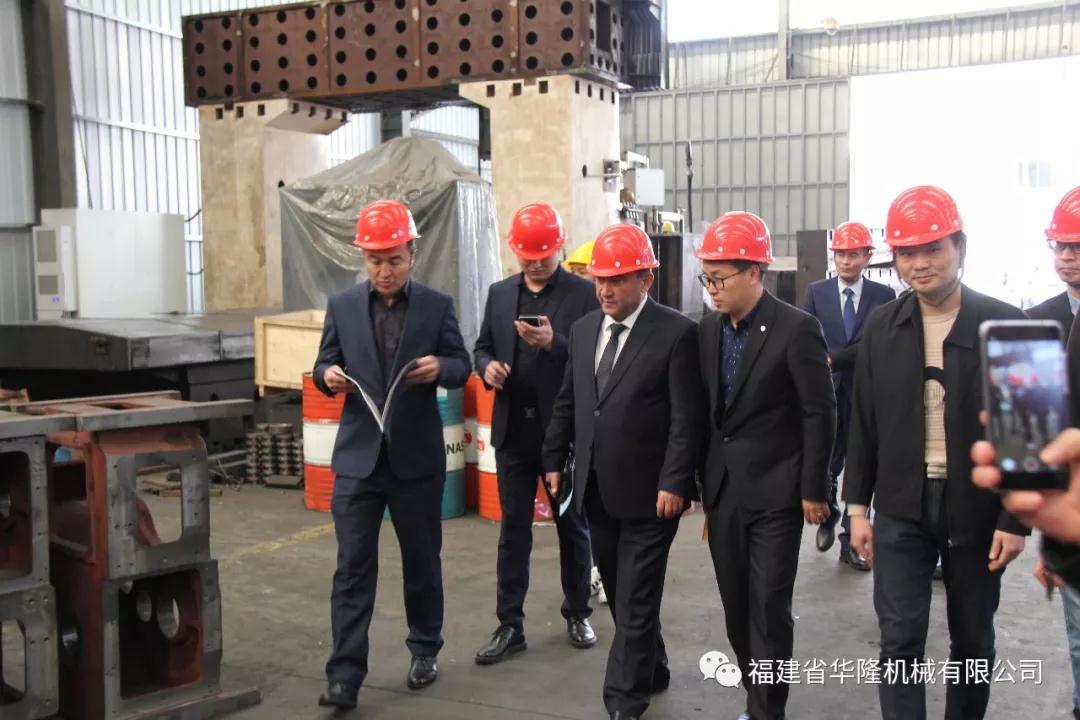 圖為烏茲別克斯坦納沃伊州市長代表團參觀華隆機械生產車間